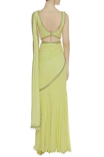 Saree Trends Women’s Faux Georgette ready to wear Frill saree with unstitched blouse